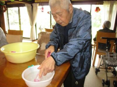 水が漏れだしてしまい、お母さんが小まめにテーブルを拭いて下さっています。