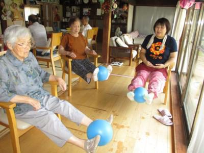 一方、機能訓練に取り組む母達も、毎日の厳しい暑さに打ち勝つために一生懸命に身体を動かし頑張っています