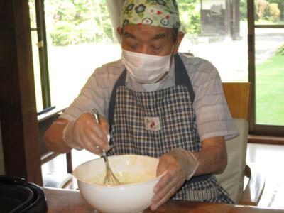 全ての材料の計量が終りましたら、混ぜ合わせて生地の硬さを整えて行きます。