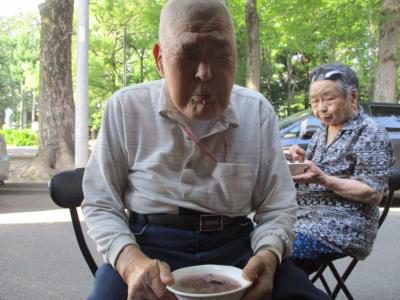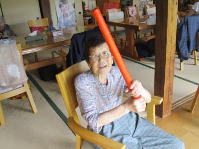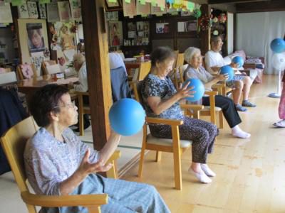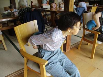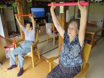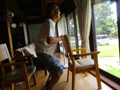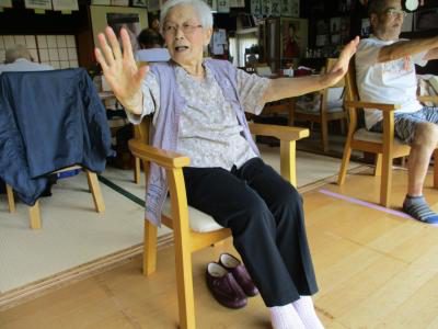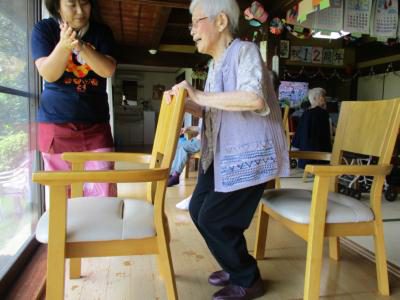朝のセレモニー後は縁側へ移動して機能訓練走る人