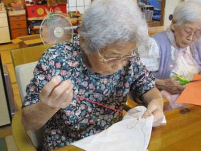 きれいな刺繍糸を使い、一針一針丁寧に縫っていきます