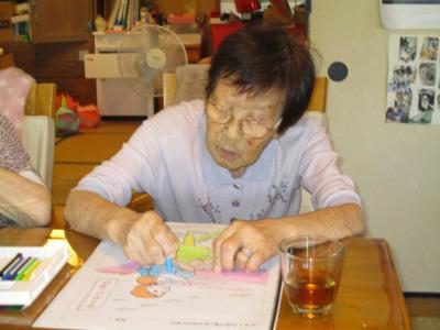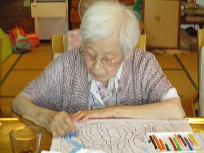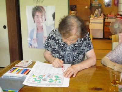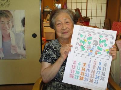 【葛】の塗り絵カレンダーに取り組むお母さんも、完成間近です!