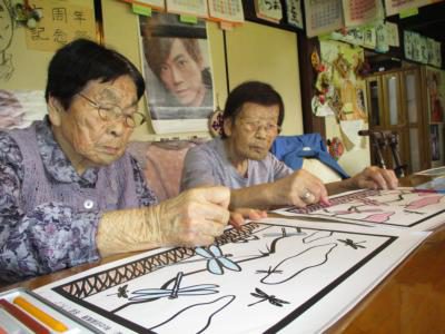 縁側の景色を眺めながら一生懸命取り組まれましたdouble exclamation