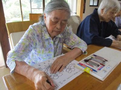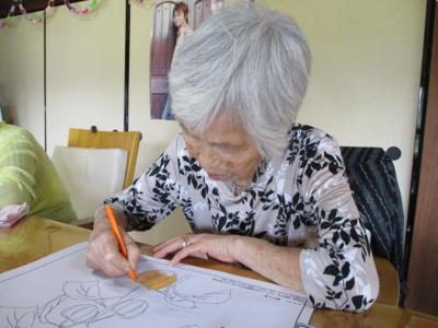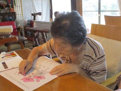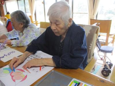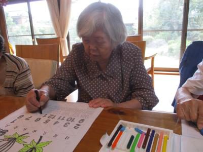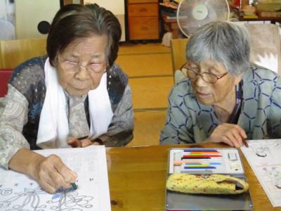 こちらのお母さん達はカレンダー塗り絵で脳活性化