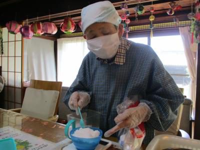お母さんは、砂糖、塩等の材料を計って下さいました