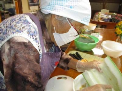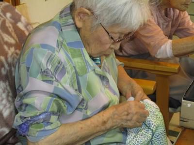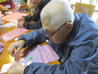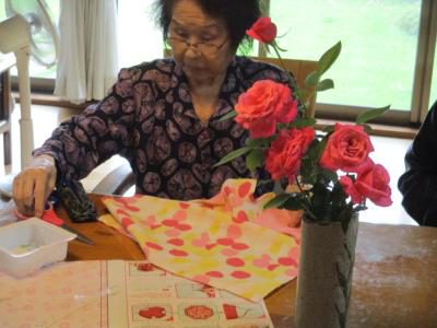 バラの香りに癒されながら、優しい気持ちで手工芸に取り組む母達・・・