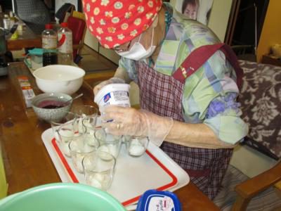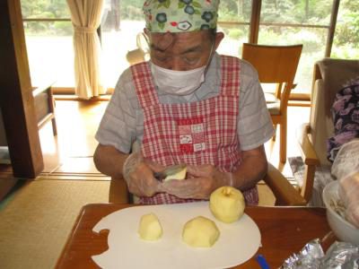 こちらでは、デザートのヨーグルトの盛り付け&リンゴの皮むき♪