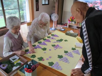 お父さん達は、ぶどうの壁飾りの大作に取り掛かり中!