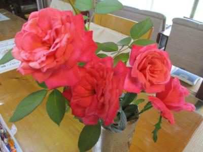 幸望庵に咲くバラのお花を摘み取り、花瓶に挿してみました。