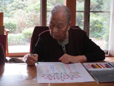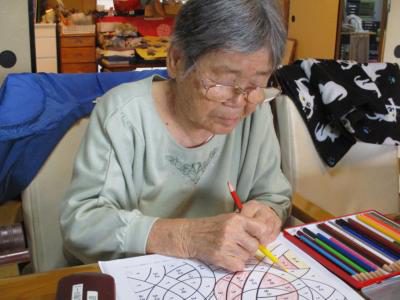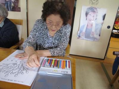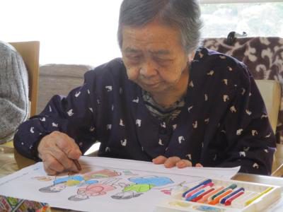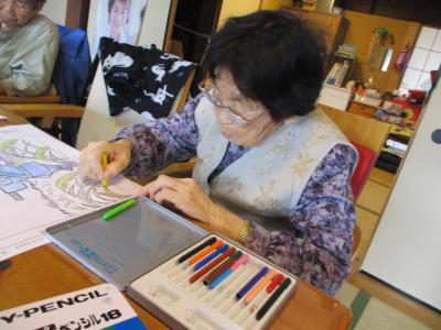 女の子たちの昔遊びの塗り絵では、遠い昔を懐かしみ、子供の頃に遊んだ遊びを思い出されながら、細やかに色塗りをされていました。