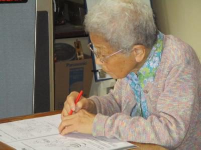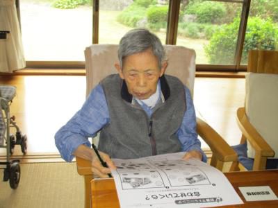お隣同士会話をしながら、楽しくそれぞれの脳トレに取り組まれています。
