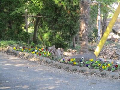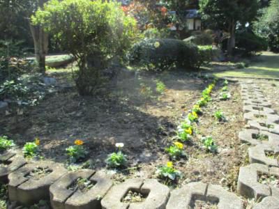 入り口だけでなく、お庭の花壇にもパンジーが植えられ、明るく華やかになりました