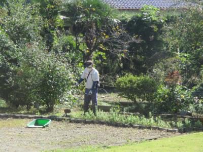 お庭に目をやると、斉藤さんが除草作業&パンジーの植え付け作業に来て下さっています。