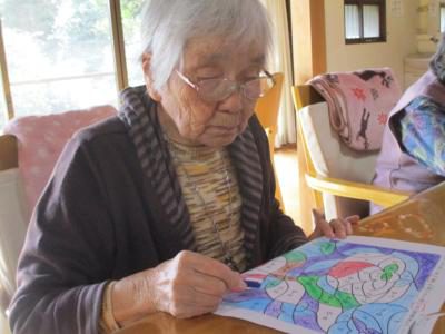 数字塗り絵は、数字毎に色を変えるので、右に左に色鉛筆を持ち替えながら集中され取り組んでいました