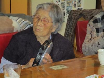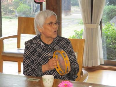 タンバリンでリズムに乗って、一緒に口ずさみながら参加るんるん (音符)