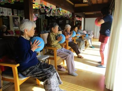 歌謡体操ではリズムに合わせてのびのびと身体を動かしました