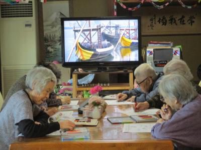 皆さんでワイワイと賑やかに、暦の下絵選びを楽しまれています♪
