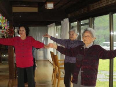 歌謡体操では、リズムに合わせてしっかり身体を動かせました