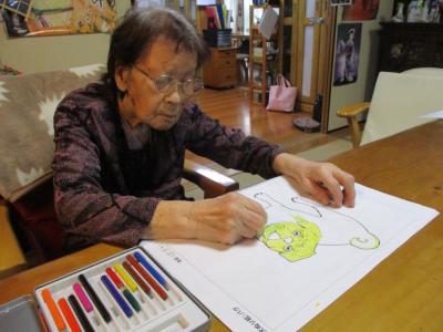 塗り絵に取り組まれるお父さん・お母さん