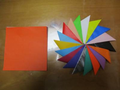 折り紙を使って鍋敷きコースターを作ります。