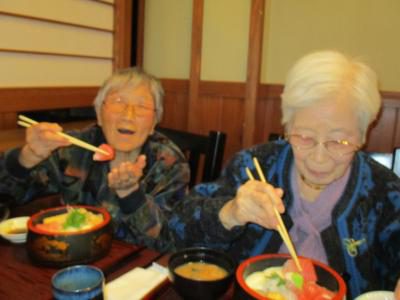 こちらの母達は、具材たっぷりの海鮮丼に舌鼓を打ちながら、まるで宝石箱のような海の幸をたっぷりと堪能されています♪