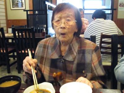 大きな海老天婦羅を戴くお母さん(^o^)丿