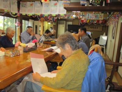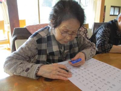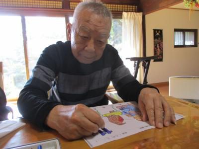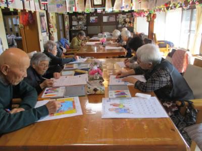 点つなぎに取り組まれた後、セッセと色塗りに取り組まれ、秋の風情漂う素敵な塗り絵が出来上がりました\(^o^)/