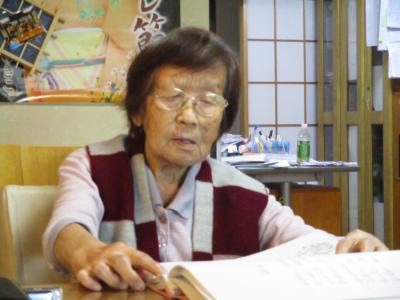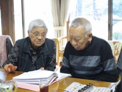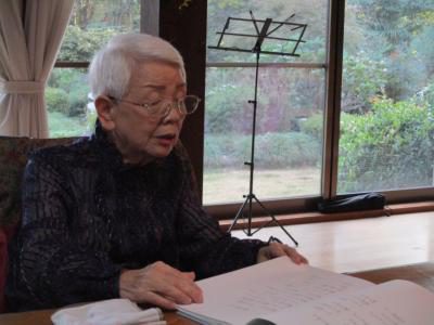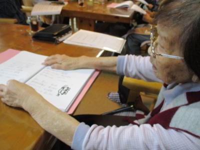 歌詞カードを手に、歌詞を目で追いながら一緒に口遊まれています。
