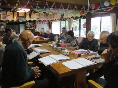 メンバーの吹くハーモニカのリズムに合わせて、利用者様が一緒に歌うというスタイルです