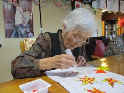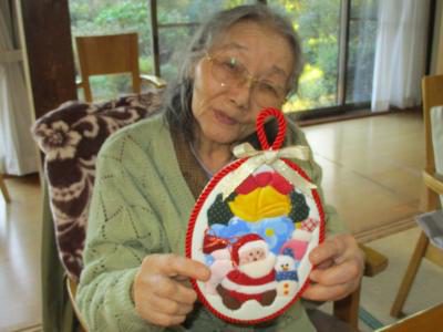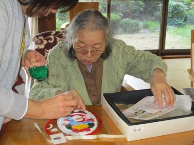 サンタクロースの押絵は、クリスマス前に完成するかしら??と熱心に手先を動かし取り組むお母さん♪