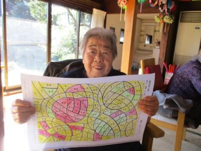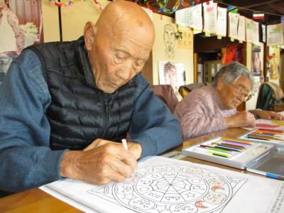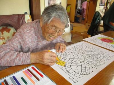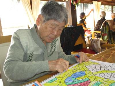 塗り絵には、絵の輪郭を把握する、それを覚える配色する、集中する、手を動かすなど