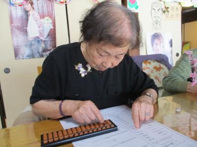 こちらのお母さんはそろばんを弾いて、計算問題に取り組まれました。