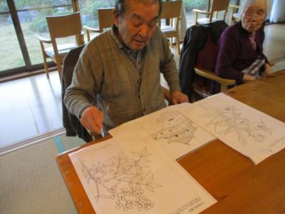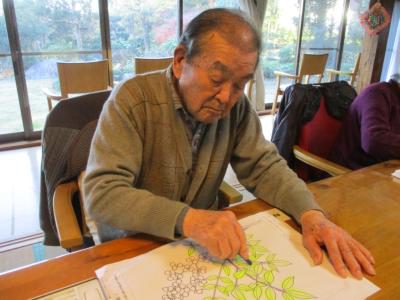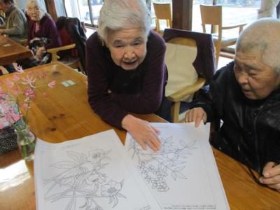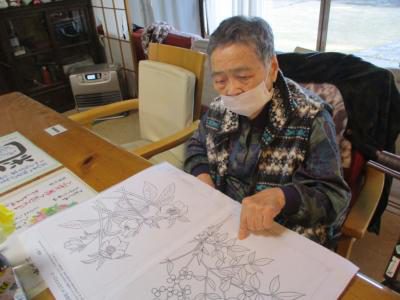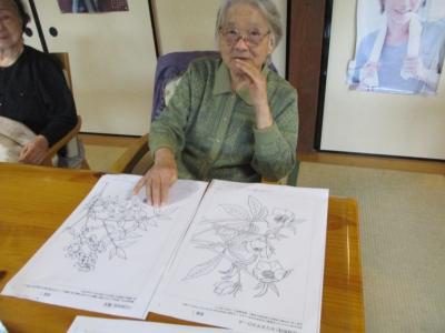 こちらのお母さんは手本を見ながら綺麗に塗られています
