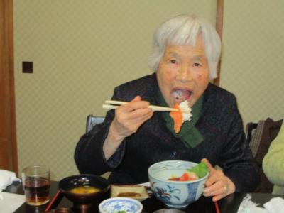 長生きの秘訣は食事をしっかり食べる事ですね指でOK