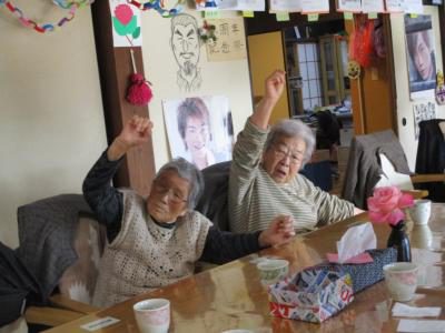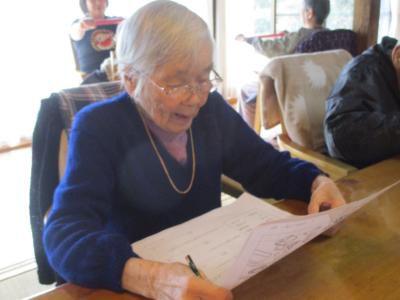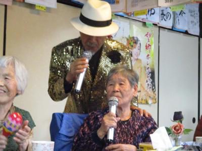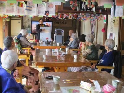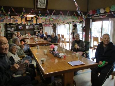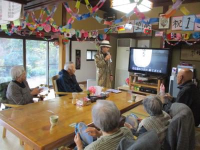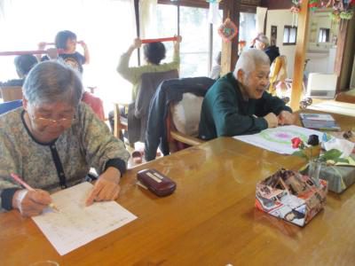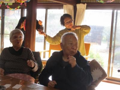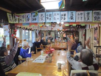 ぼけたらあかんの唱和では、元気にハリのある皆さんの声がお部屋に広がって心地よいです・・・
