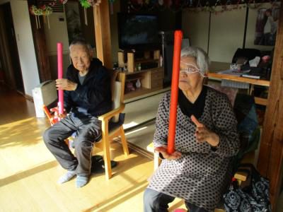 ポカポカの縁側では、体操に取り組む父や母・・・