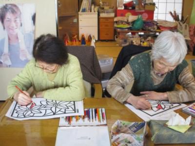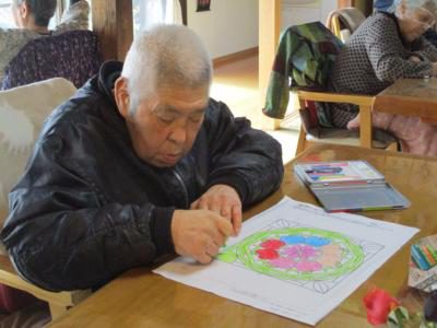 曼荼羅塗り絵では、あれこれ塗る色に拘りながら集中され取り組まれていました