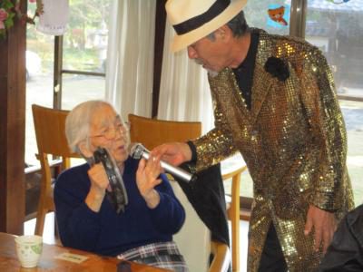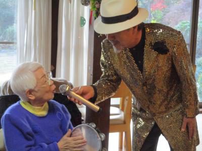 マラカスやタンバリンを打ち鳴らし、オーナーの登場を笑顔でお迎え