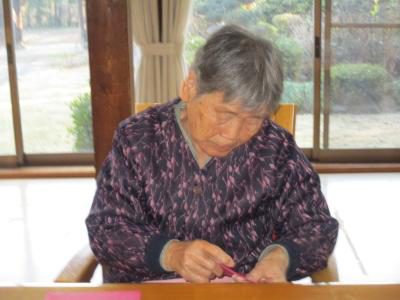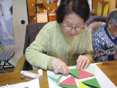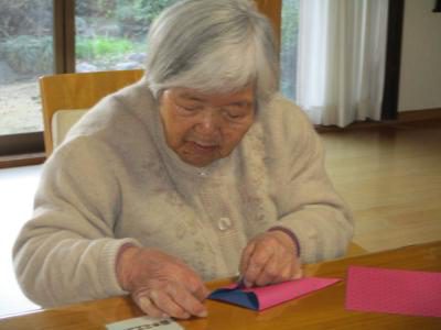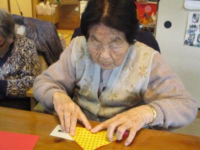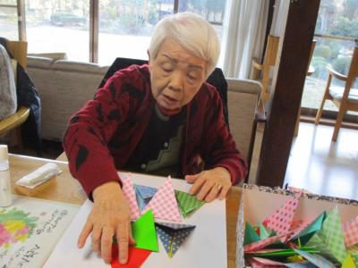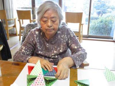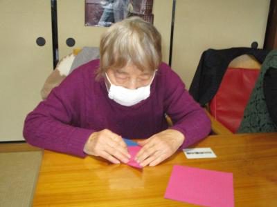 折り紙を丁寧に折っていきます