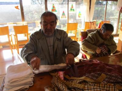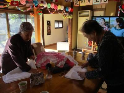 体操を行う為、縁側に集まった方々は足元が
