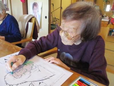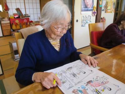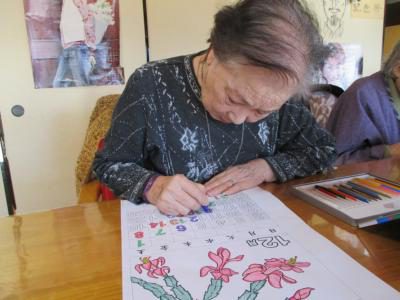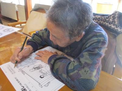 脳トレでは塗り絵や点つなぎ・間違い探しなどに取り組まれ