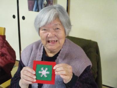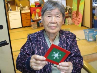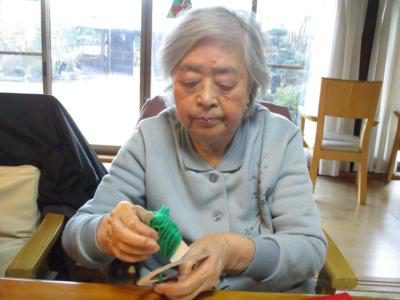 今度は丸い型紙に毛糸をクルクル、クルクル巻いていきます