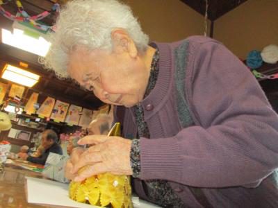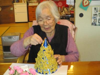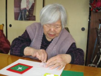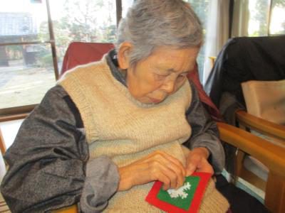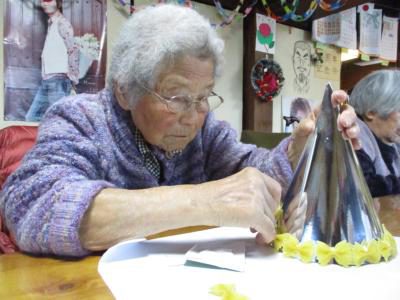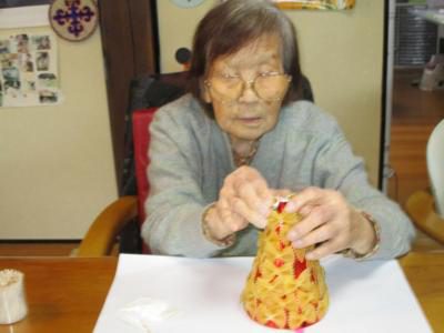 リボンパスタを使ってとんがり帽子に貼っていきます
