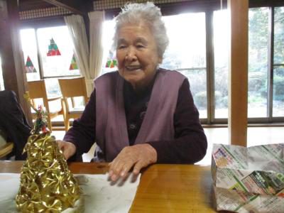 製作途中のツリーを眺めて、ご満悦のお母さん。