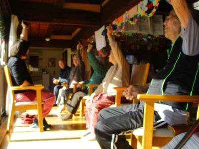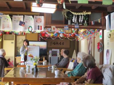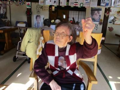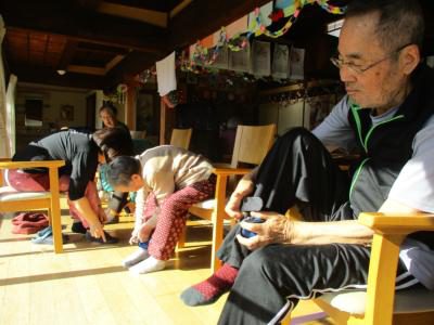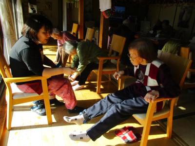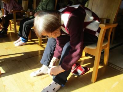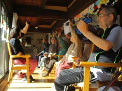 ポカポカの縁側では、機能訓練に取り組む母達の姿・・・