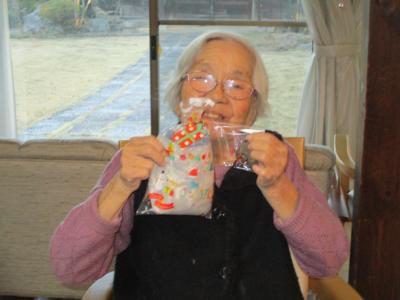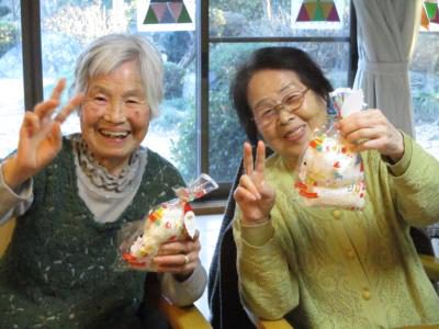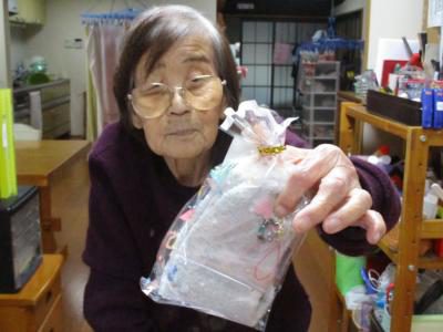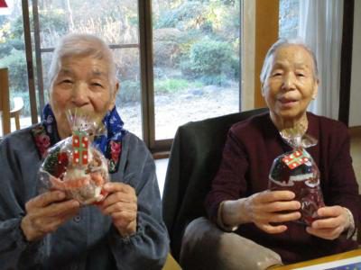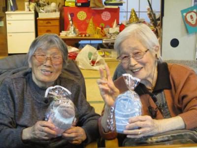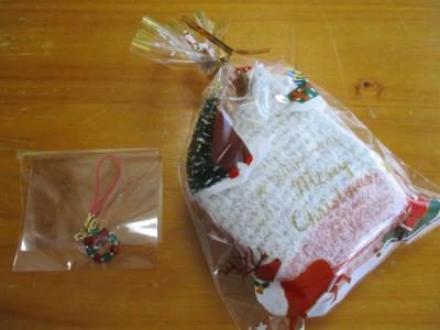 もこもこのあったか靴下とスタッフ手作りのリースストラップ