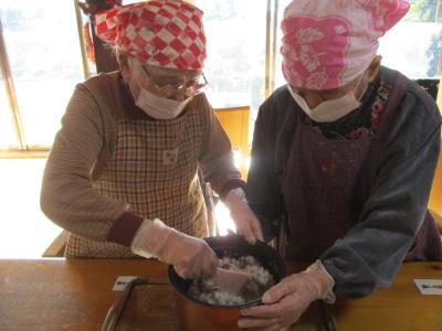 こちらでは、炊き立てのご飯にゆかりを混ぜ合わせて、おにぎりを握って下さっています。