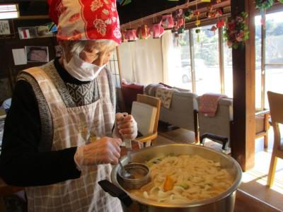 味の染みたほうとううどんに舌鼓を打ちながら、楽しい昼食のお時間を仲間と楽しみます