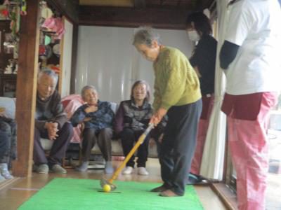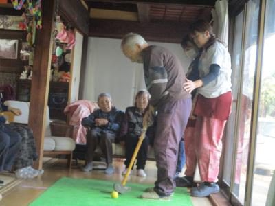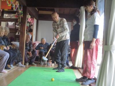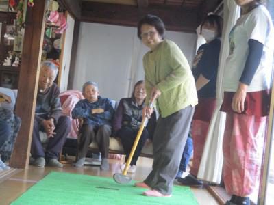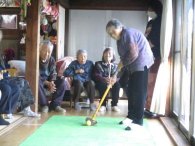午後は久しぶりに縁側に並んでみんなでパターゴルフ