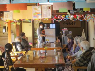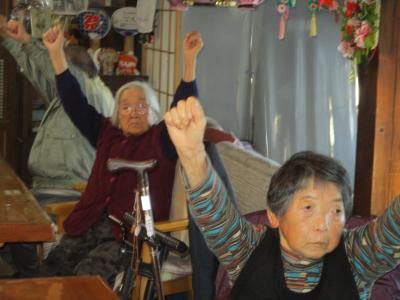 1・2・1・2・と声を出しながら皆さんで楽しく身体を動かしました